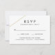 Carte RSVP de choix de repas géométrique moderne avec une ligne d'or en haut à gauche sur un arrière - plan blanc. Un design minimaliste qui reste chic et design.