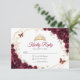 Burgundy gold and white floral Quinceanera RSVP reply card. Features, script font, gold butterflies, watercolor roses and tiara. Perfect for an elegant princess style glam celebration. Personalize with your own details.