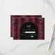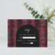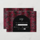 Cet élégant design présente une image arrière - plan moody de motif vintage faux velours floral damassé en bordeaux et noir. Les initiales "rsvp" apparaissent dans un élégant script de calligraphie gris argent, avec du texte personnalisable et des espaces pour les réponses des invités ci-dessous. Un motif de damas bordeaux et noir correspondant apparaît à l'envers.