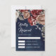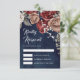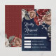 Cartons Réponse Burgundy Red Roses Floral Navy Blue Wedding