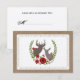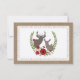Une réponse de mariage comportant une illustration de fleurs rouges, de houx et de verdure disposés avec les bustes d'un cerf et d'une biche. Personnalisez avec votre initiale. Le fond est inspiré de toile de jute et de dentelle. Recherchez les invitations de mariage assorties et plus encore chez Jill's Paperie.