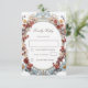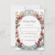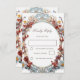 Cette carte-réponse de mariage moderne présente un cadre floral 3D en bleu, rouge et jaune sur fond blanc.