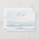 This wedding RSVP card features a serene beach scene with gentle waves and a soft sky, creating a calming and inviting atmosphere. The minimalist design uses soothing pastel blues and whites to evoke a tranquil seaside ambiance, enhanced by smooth gradients that mimic watercolor effects. Elegant script typography at the top adds formality, while clean sans-serif fonts provide clear instructions for guests to respond. Perfect for couples seeking a modern yet peaceful theme, this card balances visual appeal with functional clarity, making it ideal for any beach-inspired wedding celebration.