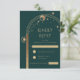 Celestial Green Gold Sun Moon Stars Astronomie Mystique Cosmique Galaxy Space Wedding Cartes RSVP propose un cadre en or soleil, lune et étoiles sur un arrière - plan vert avec vos informations de carte RSVP personnalisées dans une élégante typographie dorée. Personnalisez en modifiant le texte dans les zones de texte. Pour effectuer des modifications avancées, accédez à l'option "Cliquez pour customiser plus loin" sous "Personnalisez ce modèle". Conçu pour vous par Evco Studio www.zazzle.com/store/evcostudio