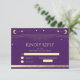 Céleste violet or Sun Moon Stars Astronomie Mystique Costique Espace Mariage RSVP Cartes offre le soleil, la lune et les étoiles avec un cadre doré sur un arrière - plan pourpre avec vos informations de carte RSVP personnalisées dans une élégante typographie de script or. Conçu pour vous par Evco Studio www.zazzle.com/store/evcostudio