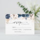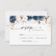 Carte RSVP pour la cérémonie de Mariage bleu et Rose Dusty de la Marine. Cette invitation à la douche de mariage élégante et élégante présente de magnifiques aquarelles peintes à la main Marine bleu et Dusty Rose Floral. Trouvez les articles correspondants dans la collection florale Rose bleu marine et Dusty.