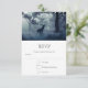 Carte RSVP avec photo d'un cerf royal aux bois debout dans une forêt sombre. Neige tombant tout autour.