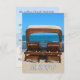 Cartes d'invitation de mariage sur la plage avec une belle plage de sable et un rivage océanique. Chaises de plage amusantes pour la mariée et le marié. Cartes de sauvegarde de date et cartes de réponse assorties, timbres de mariée et autres modèles de papeterie pour le couple. Modèles de texte faciles à personnaliser.