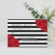 La collection de mariage chic moderne luxe présente un fond rayé classique noir et blanc accentué de magnifiques roses rouges rubis.