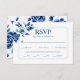 Cartons Réponse Chinoiserie florale bleue et mariage triple fronti