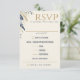 Une carte de réponse simple avec de l'espace pour 3 options de dîner pour vos invités et une ligne pour une demande de chanson ou d'allergie alimentaire. Nous sommes heureux de vous customiser plus loin, n'hésitez pas à nous envoyer un message d'assistance.