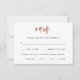 Ces cartes de réponse de RSVP de mariage simples mais modernes et élégantes présentent une typographie de script manuscrit en or rose faux classe sur un fond blanc, pour un look minimaliste qui coordonnera avec presque tous les types d'invitation de mariage. Il y a de la place pour que vos invités sélectionnent leur choix de repas de dîner ou d'entrée.