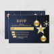 Christmas Party Golden Ornaments Navy Blue Elegant RSVP Card. Unique, beautiful, stylish design. Easy to be personalized. Font style, size and colors can be changed. Matching items are available.