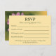 Customisez facilement cette carte RSVP pour votre mariage ou événement. Le design présente des oeuvres d'art florales représentant une fleur de chrysanthème blanc violet et crémeux avec un bourgeon et une feuille sertis contre l'ocre jaune doré et le vert olive.
