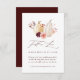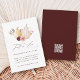 Cette carte de mariage RSVP présente des citrouilles d'aquarelle blanc et jaune ornés de fleurs bordeaux, marrons et roses rousses sur les feuilles d'automne, et un code QR sur le dos. Pour une personnalisation plus avancée de cette conception, cliquez sur le lien "Customiser plus loin". Des articles correspondants sont également disponibles.