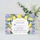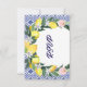 Élever votre mariage avec notre carte RSVP Carreaux bleu citron italien méditerranéen. Ce design enchanteur présente des citrons d'aquarelle vibrants et des roses roses roses, complétés par un motif de tuiles bleu italien méditerranéen avec script de typographie stylisé" RSVP" dos côté sur lettrage bleu & or. Cette carte promet d'apporter le charme méditerranéen à votre mariage. Vous pouvez facilement modifier votre texte, vos polices et vos couleurs en cliquant sur les outils de personnalisation. Vous pouvez transférer cette conception sur une variété de produits sans effort.