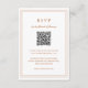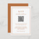Mariage de style classique couleur terre couleur carte RSVP en terre cuite / rouille / orange avec un design simple et minimal avec un code QR en option et des détails entourés d'une double bordure (si vous préférez, vous pouvez supprimer le code QR dans l'outil de montage de conception). Les fontes alternent entre un script élégant, une fonte serif traditionnelle et minimaliste sans serif. Cette carte de réponse est idéale pour un mariage officiel.