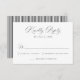 Finish your wedding stationery suite with this classic charcoal gray calligraphy wedding RSVP card, featuring a timeless and understated design. Elegant calligraphy-style lettering is paired with traditional serif typography for a clean, easy-to-read response card that feels refined without being ornate. The soft charcoal gray color creates an editorial, ink-forward look, complemented by gray and white stripes for a tailored finish. Ideal for formal weddings, black-tie celebrations, and church ceremonies, this minimalist wedding RSVP card offers a sophisticated option for guest replies. Customize the wording to create a cohesive and polished wedding response card.