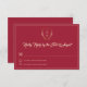Ce design est composé d'un arrière - plan de couleur rouge et dorée, d'un élégant monogramme opulent et d'un script de calligraphie, d'une carte de réponse mariage personnalisée. Ce produit peut être facilement personnalisé. Si vous avez besoin d'aide pour la personnalisation du produit ou si vous avez besoin de produits correspondants, veuillez me contacter via Zazzle.