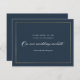 Ce Classic Elegant Gold Mariage Website RSVP Card est simple et polyvalent. Il présente un design chic bleu marine et blanc avec un cadre doré, des détails de script et un texte modifiable minimal. Cliquez sur le bouton Modifier pour customiser cette conception.