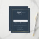 Cette carte RSVP Classic Elegant Gold Wedding est simple et polyvalente. Il présente un design chic bleu marine et blanc avec un cadre doré simple, l'art script rsvp art et un texte modifiable minimal. Cliquez sur le bouton Modifier pour customiser cette conception.