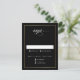 Cette carte RSVP Classic Elegant Gold Wedding est simple et polyvalente. Il présente un design chic blanc et noir avec un cadre doré simple, un script art rsvp et un texte modifiable minimal. Cliquez sur le bouton Modifier pour customiser cette conception.