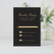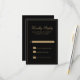 Carte de mariage RSVP de style traditionnel noir et faux or avec un design simple avec "Kindly Reply" dans une calligraphie élégante à l'intérieur d'une mince bordure. Le modèle permet à vos invités d'indiquer le numéro de présence. Ce design classique est parfait pour un mariage formel.