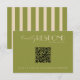 A simple and elegant calligraphy moss green and cream retro QR code wedding rsvp card. That has a vintage and modern moss green background with cream script and hand written whimsical stylish wordings and scannable QR code. With green and cream pinstripes on the back. Minimalist and chic with handwritten lettering . It is all editable by clicking on the personalize button.