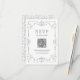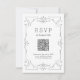 Design de cadre en volute orné d'élégance vintage en noir et blanc charbon. Motif damassé avec monogramme au dos, moderne, élégant et chic, parfait pour un mariage vintage, un mariage Art déco toute l'année. Couleur de fond modifiable pour correspondre aux couleurs de votre thème de mariage. Personnalisez votre propre carte de réponse QR code pour votre invitation de mariage.