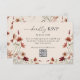 Embrassez l'esprit de l'automne avec ces cartes RSVP Boho Fleur sauvage Mariage QR Code enchanteresses, avec un design floral aquarelle dans les tons chauds terre et terre cuite. Parfaites pour votre mariage à thème chute ou bohème, ces cartes RSVP seront non seulement un moyen pratique de suivre les réponses de vos invités, mais aussi un rappel élégant de votre style mariage distinct.