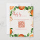 Carte de réponse de mariage automnal à code QR élégant à l'aquarelle Citrus Orange. Ajoutez une touche fraîche et moderne à votre papeterie de mariage avec cette carte d'insertion de détails de mariage sur le thème des agrumes, présentant des oranges peintes à la main à l'aquarelle, des fleurs et une verdure luxuriante. Le devant comprend des informations importantes sur l'événement, les hébergements d'hôtel et votre site web de mariage. Le verso présente un mot de remerciement élégant et un code QR scannable pour un accès facile à votre RSVP, registre, informations de voyage, et plus encore.