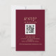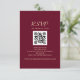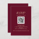 Elégante, moderne, simple, contemporaine, minimaliste, or et bordeaux carte de mariage RSVP avec code QR, site Web et unique dessiné par des inséparables de couple à la main à l'arrière.