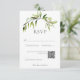 Célébrez votre amour avec notre carte de réponse mariage de verdure à l'aquarelle enchanteresse avec code QR. Conçu avec élégance, ce design présente une délicate touffe de verdure peinte à la main, ornée de subtiles baies au sommet, créant une touche de romantisme intemporelle. La simplicité de l'arrière - plan blanc clair permet à vos détails mariages de prendre le devant de la scène, permettant à votre histoire d'amour de briller. Ces invitations captent sans effort l'essence de la beauté naturelle et de la sophistication, donnant le ton parfait pour votre journée spéciale. Partagez la joie de votre union avec votre famille et vos amis dans le style avec notre design exquis. Cette carte fait partie de la Rustic Botanical Greenery Bough Mariage Suite créée par Simply Farmhouse Press.