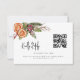 Carte RSVP de Noël rustique avec aquarelle illustrant les plantes hivernales, y compris, le mistletoe, la branche de pin, les baies, l'orange, etc. avec un code QR.
