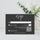 Cette carte de réponse mariage avec un code QR design comporte un thème sombre et moody simple, mais étonnant. Un arrière - plan noir de fusain foncé est la toile parfaite pour le texte blanc simple. Unique et élégant, ce design peut être utilisé pour n'importe quelle saison. Créé par Simply Farmhouse Press.