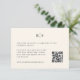 Conçue pour coordonner avec notre collection Color Border faire-part de mariage, cette carte de réponse mariage simple et chic est dotée d'un élégant monogramme haut en noir clair sur une carte d'ivoire écru crémeuse, avec votre date RSVP et des instructions en lettres de bloc et de script classiques. Customisez le code QR pour permettre aux clients de scanner et RSVP facilement. Un look élégant et intemporel pour votre aventure formelle.
