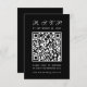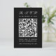 Un simple mariage noir et blanc RSVP avec un grand code QR au centre et le titre écrit en calligraphie. L'arrière - plan est noir, tout le texte est blanc. Il est vertical, orienté portrait.