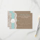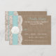 La collection de mariage de plage de sable turquoise dollar est un design époustouflant avec un bel arrière - plan rustique effet burlap avec un habillage romantique vintage effet dentelle blanche terminé avec un dollar de sable étonnant et ruban turquoise. Ces cartes RSVP peuvent être personnalisées pour votre occasion spéciale et feraient les cartes d'insertion parfaites pour un mariage, douche nuptiale, fête de fiançailles, fête d'anniversaire et bien plus encore. *Veuillez noter que Zazzle ne vend que des invitations imprimées, de sorte que ces invitations n'ont pas de matériel de burlap, dentelle, dollar de sable ou ruban.