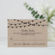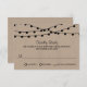 Simple mais élégant, les lampes à cordes de la collection rustique Kraft mariage est un design époustouflant avec de belles lumières à cordes noires accrochées sur un arrière - plan à effet Kraft, qui est parfait pour toute célébration mariage rustique. Ces cartes RSVP peuvent être personnalisées pour votre occasion spéciale et feraient la carte de réponse parfaite pour votre mariage, douche nuptiale, fête de fiançailles, fête d'anniversaire et bien d'autres occasions spéciales. Ajoutez votre libellé personnalisé à cette conception à l'aide des cases "Modifier ce modèle de conception" situées à droite de l'élément, ou cliquez sur le bouton bleu "Customiser" pour arranger le texte, modifier les polices et les couleurs et ajouter des informations ou des images supplémentaires à cette conception. AFFICHER LES ÉLÉMENTS CORRESPONDANTS POUR CETTE COLLECTION