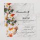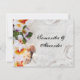 Ensemble d'invitation de mariage avec une belle image d'un lei tropical avec des fleurs de Plumeria et d'Orchidée, posé sur le sable avec trois coquillages. Invitation unique et colorée pour un mariage sur la plage, à l'océan, en croisière, à Hawaii ou dans une station balnéaire tropicale avec des couleurs fraîches de jaune, orange, vert et violet. Invitation de mariage et ensemble d'accessoires assortis. © 2010 www.CustomInvitesOnline.com