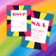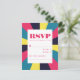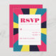 Retro art coloré abstrait arc-en-ciel personnalisé carte de mariage RSVP. Palette de couleur bleu rose jaune. Cette carte de réponse est facilement modifiable. Si vous avez besoin d'aide pour la personnalisation de ce produit ou si vous avez besoin de plus de produits correspondants pour cette collection, envoyez-moi un message aimable via Zazzle.