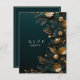 Belle carte de réponse de mariage d'hiver dans un vert chasseur foncé avec de jolis cônes de pin, branches de pin et des accents de feuilles dorées.