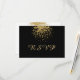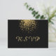 Une élégante carte RSVP moderne avec un effet splash or confetti sur un arrière - plan noir. Le style et le placement de la police peuvent être modifiés comme vous le souhaitez.