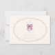 Coquette Pink Bow Graduation Carte RSVP Complétez votre invitation de graduation avec la Coquette Pink Bow Graduation Card RSVP, conçue pour ajouter une touche d'élégance et de charme à votre célébration. Dotée d'une délicate illustration d'arc rose, de tons pastel doux et d'une typographie raffinée, cette carte RSVP complète parfaitement un événement de graduation stylée et féminine. Caractéristiques : Coquette Chic Aesthétique - Un arc rose dainty et des détails doux et romantiques créent un look sophistiqué et intemporel. Détails personnalisables - Personnalisez avec votre nom, la date de l'événement, l'échéance RSVP et les options de réponse. Impression de haute qualité - Imprimée sur des cartons de qualité supérieure pour une finition poli et luxueuse. Typographie élégante - Une mise en page de police superbement guidée qui améliore le design raffiné de la carte. Options numériques et d'impression - Choisissez une version imprimable ou faites-la imprimer et livrer professionnellement. Cette carte RSVP est la touche finale parfaite de votre collection Coquette Pink Bow Graduation Collection, assurant une façon organisée et élégante de recueillir les réponses des invités. Commandez maintenant de créer un ensemble de papeterie de graduation magnifiquement coordonné.