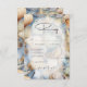 Embarquez pour un voyage d'élégance et de tranquillité avec notre carte-réponse de mariage exquise avec des options de dîner ornées de grappes d'aquarelle douces de coquillages dans une palette envoûtante de bleu océan, de crème, de rouille de terre cuite, de beige, de tan et de rose blush. Les teintes douces dansent gracieusement sur un flou ovale blanc doux, offrant le fond parfait pour un texte de style moderne qui capture sans effort l'essence de votre histoire d'amour. Avec l'équilibre délicat entre un design captivant et la lisibilité, cette conception donne le ton à une célébration aussi unique que votre lien. Tournez pour révéler une fois de plus l'envoûtant fond de coquillages, complétant l'harmonie du design. Invitez vos proches à se joindre à vous pour célébrer votre journée