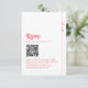 Simplifiez votre processus RSVP avec la carte RSVP Chic Retro Summer Bright Hot Pink Mariage QR Code. Ce design dynamique présente un arrière - plan rose chaud audacieux associé à une typographie d'inspiration rétro, qui dégage des vibrations estivales amusantes. Le code QR inclus dirige les clients vers RSVP en ligne, alliant confort moderne et charme intemporel. Parfait pour les couples qui souhaitent ajouter une touche design et pratique à leur papeterie mariage.