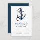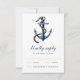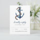 Elégante carte RSVP à thème nautique avec ancre et corde aquarellée avec typographie moderne.