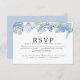 Vos invités aimeront cette belle carte de réponse avec choix de repas. Aquarelle tropicale feuilles et fougères dans les tons bleu et vert de fleurs de maïs. Associez-le à une police contemporaine moderne pour présenter vos détails. Conception créée pour BarefootBride™ par ©WhimsicalArtwork™ Nous avons créé ce modèle pour vous permettre de personnaliser facilement vos informations personnelles. Cela fait partie d'une suite de papeterie mariage coordonnée.