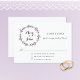 Ressemblant à un jardin de cottage, cette carte de réponse mariage présente une couronne d'aquarelle verte ornée de feuilles violets et verts, avec les noms de mariée et de mariée élégamment affichés au centre. C'est le choix idéal pour ceux qui envisagent un mariage d'extérieur d'inspiration nature avec une touche d'élégance.