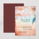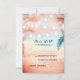 Lumières à cordes, palmiers et roses - coucher de soleil de corail à la plage cartes de réponse de mariage